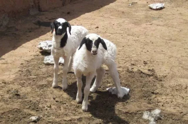 ①用南非土種綿羊黑頭波斯母羊作為母本,引進(jìn)英國(guó)有角陶賽特羊作為父本雜交培育而成是個(gè)國(guó)外的肉用綿羊品。分為白頭杜泊和黑頭杜泊兩種。