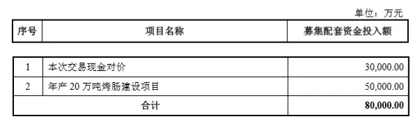 科迪乳業(yè)擬向不超過 10 名符合條件的特定投資者非公開發(fā)行股份募集配套資金,本次募集配套資金總額不超過8億元。擬用于支付本次交易現(xiàn)金對價和年產(chǎn) 20 萬噸烤腸建設(shè)項目。