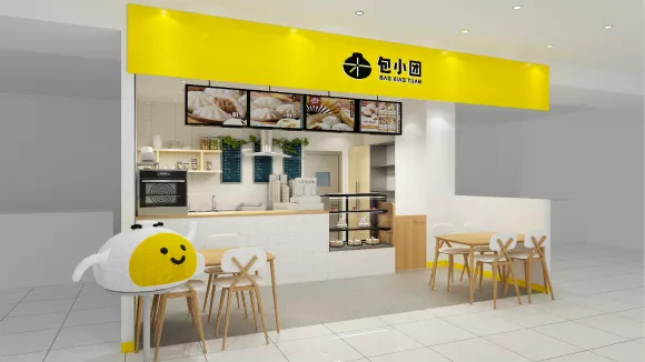迎合年輕人的喜好,改變了品牌調(diào)性的“包小團(tuán)”,打出了“包子界最有根兒的潮牌”的口號(hào)。從漫畫風(fēng)格的LOGO、到以黃、白兩色為主的店面設(shè)計(jì),都在營(yíng)造小清新的用餐氛圍。