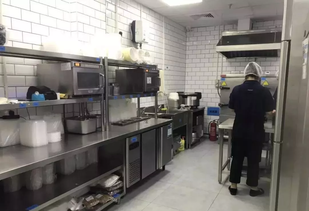 北石路店主要分兩個區(qū)域:倉庫和廚房。倉庫主要放置幾個較大的冷凍柜和冷藏柜,里面是已經加工好的半成品食材,門店員工只需把這些食材加熱,或者放在烤箱里蒸烤,一份美味的外賣就出爐了。倉庫里除了冷凍冷藏品外,還有一些常溫食品的備貨區(qū),這些常溫食品都是搭配外賣進行銷售的。