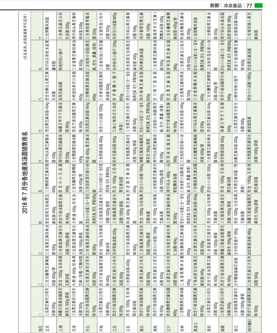 來源: 冷凍食品網(wǎng) 發(fā)布者:編輯▼2018年7月份各地速凍湯圓銷售排名