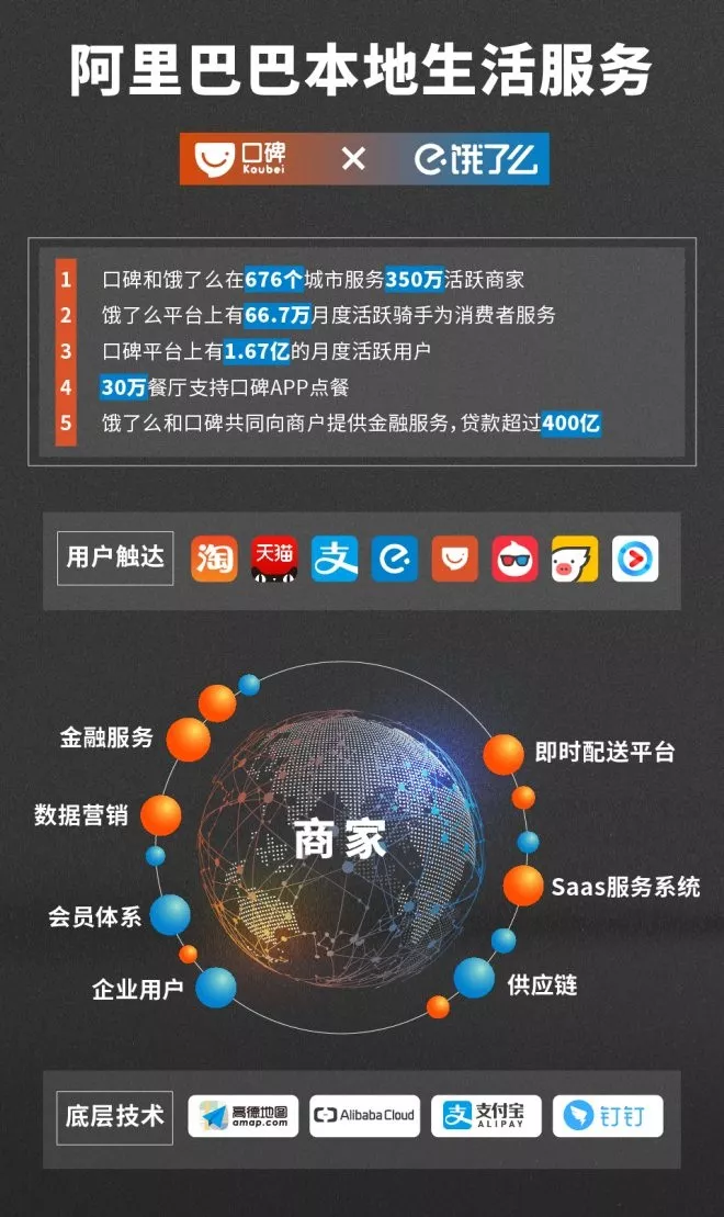 新成立的阿里本地生活服務(wù)公司是國(guó)內(nèi)領(lǐng)先的本地生活服務(wù)平臺(tái),口碑和餓了么一起在676個(gè)城市服務(wù)商家達(dá)到350萬。在餓了么的平臺(tái)上,有66.7萬的月度活躍騎手為消費(fèi)者服務(wù),平均每個(gè)用戶每年下單近20次;在口碑的平臺(tái)上,1.67億月度活躍用戶充分享受著完善的到店服務(wù)。