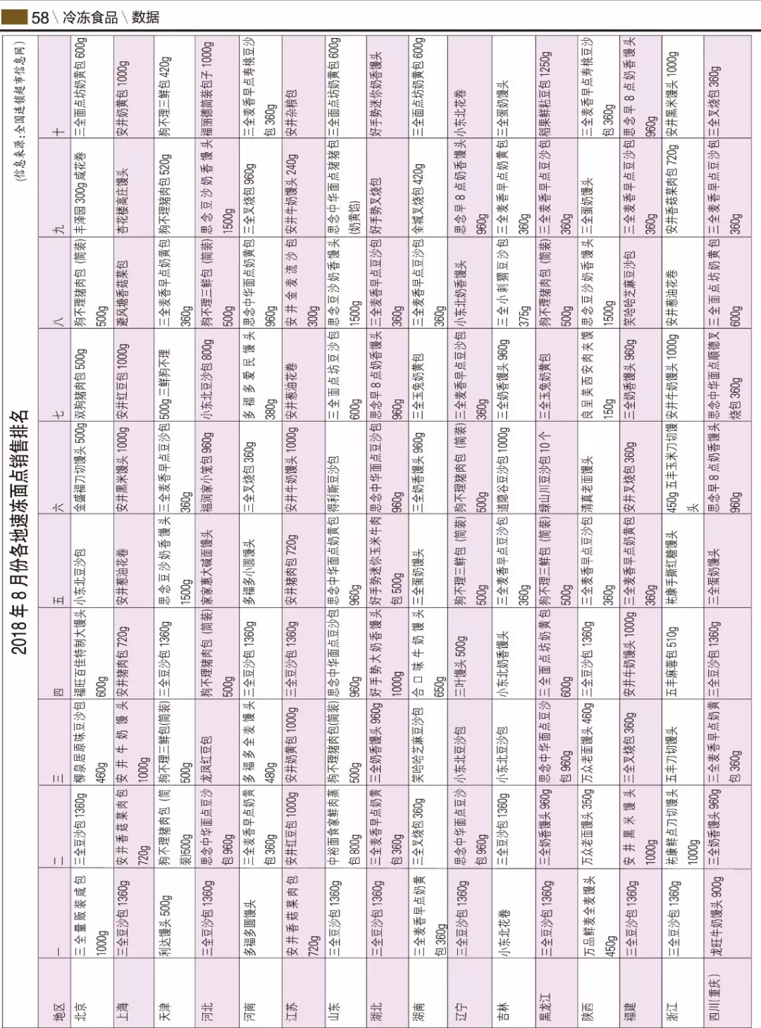 來源: 冷凍食品網(wǎng) 發(fā)布者:編輯▼2018年8月份各地速凍面點(diǎn)銷售排名