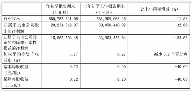 ▲惠發(fā)股份前三季度業(yè)績圖