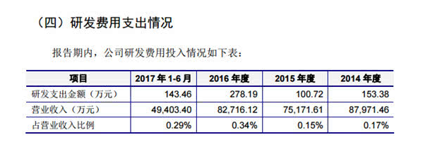 除了一線工人工資低,記者還發(fā)現(xiàn),相比好想你、周黑鴨等上市食品企業(yè)每年?duì)I業(yè)收入3%左右的研發(fā)投入,有友食品每年在研發(fā)上的投入非常少。有友食品靠單一產(chǎn)品打天下已經(jīng)被指存在很大風(fēng)險,公司在接受媒體采訪時稱,制定了完善的計(jì)劃,上市后將推出更多泡鹵風(fēng)味型產(chǎn)品。招股書還披露,公司高度重視包括技術(shù)人才在內(nèi)的各種優(yōu)秀人才的引進(jìn)和培養(yǎng)。但數(shù)據(jù)卻顯示,公司每年研發(fā)費(fèi)用僅150萬元至278萬元之間,占營收比例僅0.15%至0.3%。