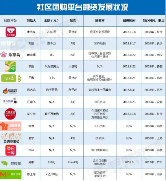 8月前后,十薈團(tuán)、你我您、食享會(huì)、鄰鄰壹、考拉競(jìng)選、蟲媽鄰里團(tuán)、天鮮配、小美鮮生陸續(xù)獲得資本青睞。誼品生鮮獲得今日資本2.4億A輪融資,十薈團(tuán)獲得知名真格基金、啟明創(chuàng)投、愉悅資本、有好東西1億元聯(lián)合投資。