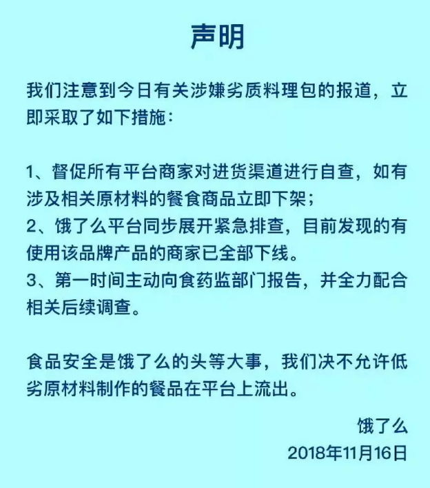 此外,外賣平臺餓了么也發(fā)布如下聲明: