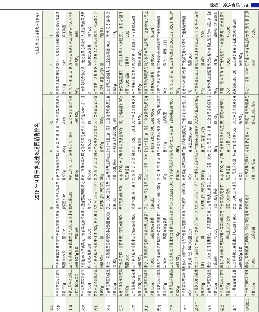 來源: 冷凍食品網 發(fā)布者:編輯今年9月份各地速凍湯圓銷售排名揭曉,從中我們能看出一些市場特點: