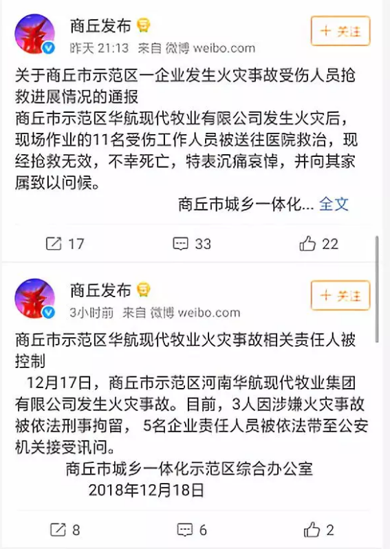 據(jù)河南商丘市人民政府辦公室官方微博通報,12月17日11時10分左右起火,到下午2時15分火勢得到控制,也就是說大火連續(xù)燒了3個小時。