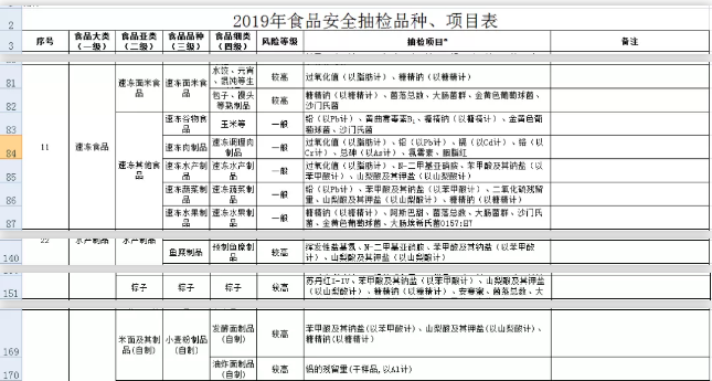 2019年食品安全抽檢品種、項目表