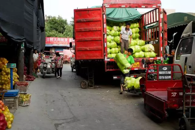 批發(fā)商一代憑實(shí)干贏得了天下,年輕的二代接過父輩的擔(dān)子登上舞臺(tái)。圖為水果蔬菜商戶在忙碌