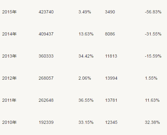三全雖然每年保持了收入增長,但歸屬于母公司所有者的凈利潤(以下簡稱“歸母凈利潤”)卻自2013年以來出現(xiàn)下滑,而且持續(xù)三年之久,2015年歸母凈利潤下滑幅度高達(dá) 56.83%。