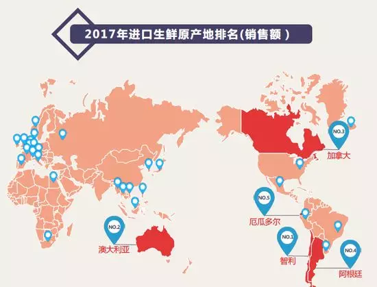 從生鮮產(chǎn)地來看,“尋鮮”走向國際,生鮮消費更加具有國際范兒。隨著人民生活水平提高,對于進口生鮮的消費表現(xiàn)得更加明顯。