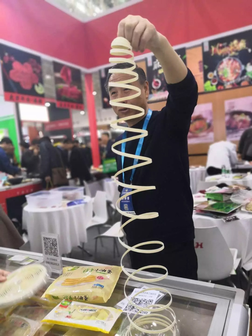 在展會上,火燒饃、卡通面點、蒸餃等米面產(chǎn)品也吸引了眾多觀展人員關(guān)注。