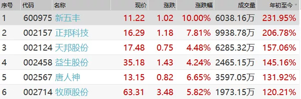 △部分養(yǎng)豬股今年來的市場表現(xiàn)