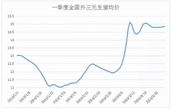 △一季度全國外三元生豬均價走勢