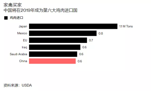 數(shù)據(jù)顯示,2019年中國(guó)的家禽進(jìn)口量將增長(zhǎng)68%達(dá)到57.5萬(wàn)噸,中國(guó)將在2019年成為全球第六大雞肉進(jìn)口國(guó)。