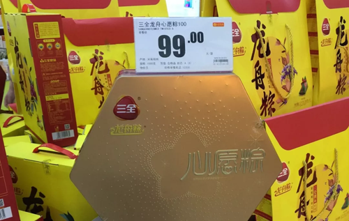 作為實體零售業(yè)中最具人氣的場所,大賣場依舊是消費者習(xí)慣購買粽子的地方。在河南鄭州的丹尼斯、卜蜂蓮花、大潤發(fā)等賣場,負(fù)責(zé)粽子促銷的人員從10人到30多人不等,有大聲吆喝的、有喇叭助威的,熱鬧異常。