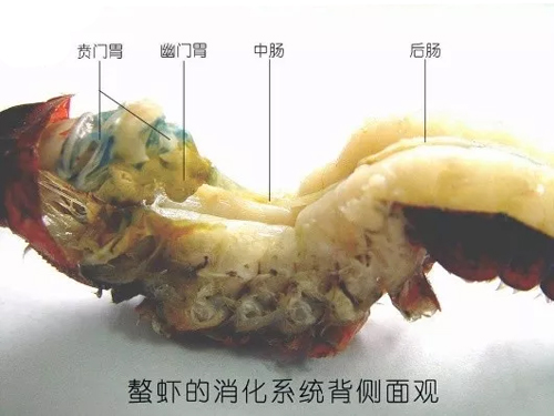 該傳言屬于信口開河類型,對小龍蝦基本無知。小龍蝦整個身體由頭胸部和腹部兩部分組成,頭胸部外有眼睛、觸須、性器官,內(nèi)有鰓、肝胰腺(蝦黃)、胃等內(nèi)臟組織,腸道位于腹部。小龍蝦的消化系統(tǒng)由口器、食道、胃、腸、肝胰臟、直腸及肛門組成。食物經(jīng)賁門胃進一步磨碎后,經(jīng)幽門胃過濾進入腸,在頭胸部的背面,腸的兩側(cè)各有一個黃色分支狀的肝胰臟,肝胰臟有肝管與腸相通。腸的后段細長,位于腹部的背面,其末端為球形的直腸通肛門,肛門開口于尾節(jié)的腹面。在胃囊內(nèi),胃外兩側(cè)各有一個白色或淡黃色,半圓形紐扣裝的鈣質(zhì)磨石,蛻殼前期和蛻殼期較大,蛻殼間期較小,起著鈣質(zhì)的調(diào)節(jié)作用。肝胰臟較大,呈黃色或暗橙色,由很多細管狀構(gòu)造組成,有管通中腸。肝胰臟除分泌消化酶幫助消化食物外,還具有吸收貯藏營養(yǎng)物質(zhì)的作用。