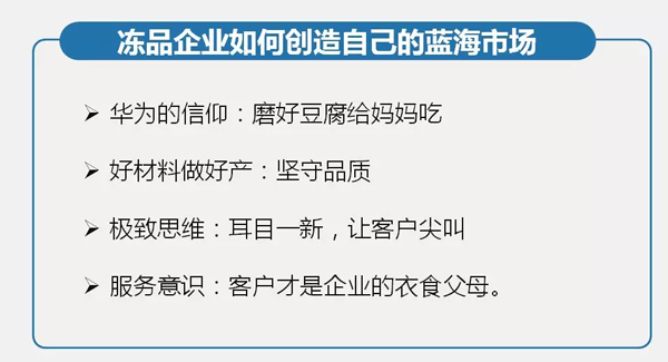 那么,問題來了,凍品企業(yè)該如何創(chuàng)造自己的新藍海市場呢?