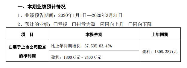 4月10日,海欣食品(002702)發(fā)布今年一季度業(yè)績預(yù)告:2020年1月1日至2020年3月31日預(yù)計盈利1800萬元–2400萬元,上年同期盈利1308.28萬元,同比增長37.59%-83.45%。