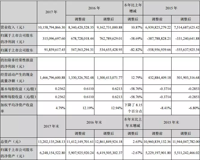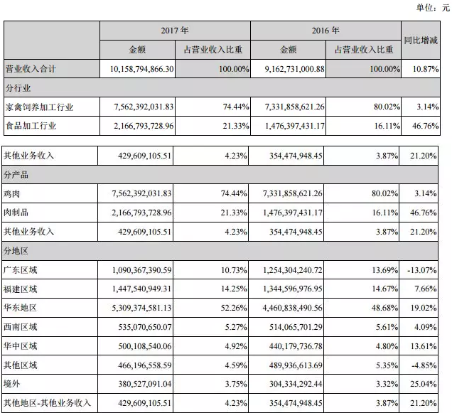 4月23日,圣農(nóng)發(fā)展發(fā)布2017年年報,2017年公司營業(yè)收入101.59億元,同比增長10.87%;歸屬于上市公司股東的凈利潤3.15億元,同比下降58.69%。