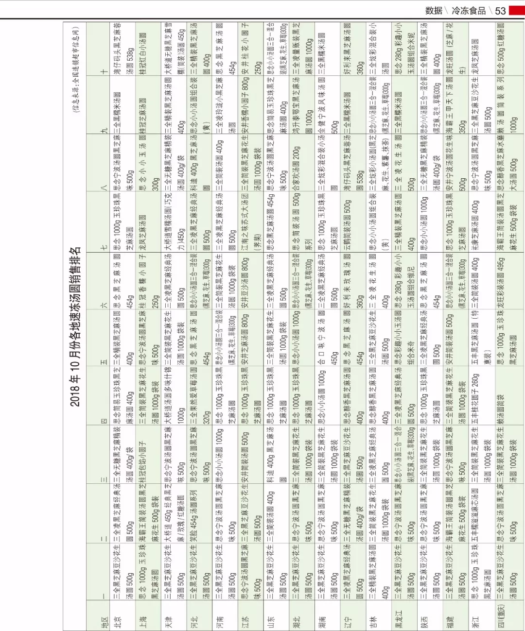 今年10月份各地速凍湯圓銷售排名揭曉: