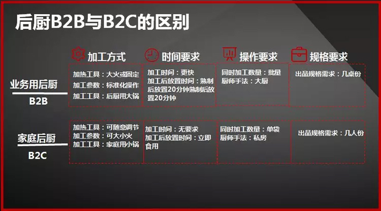 一般來說,后廚B2B和B2C的區(qū)別主要有以下幾點內(nèi)容: